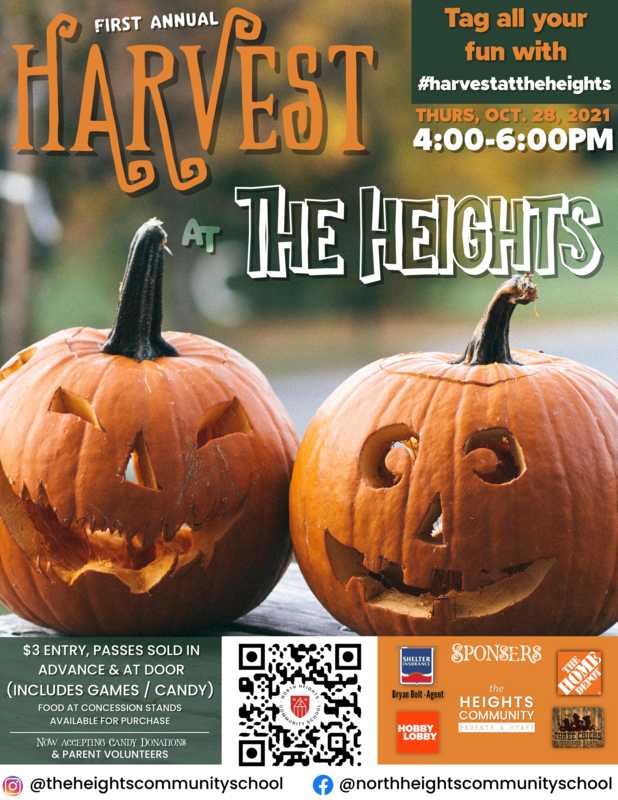 Join us on The Heights Field for our First Annual "Harvest at The Heights", Thursday, October 28, 2021, between 4:00-6:00pm. There will be games, prizes, food, music, and FUN!