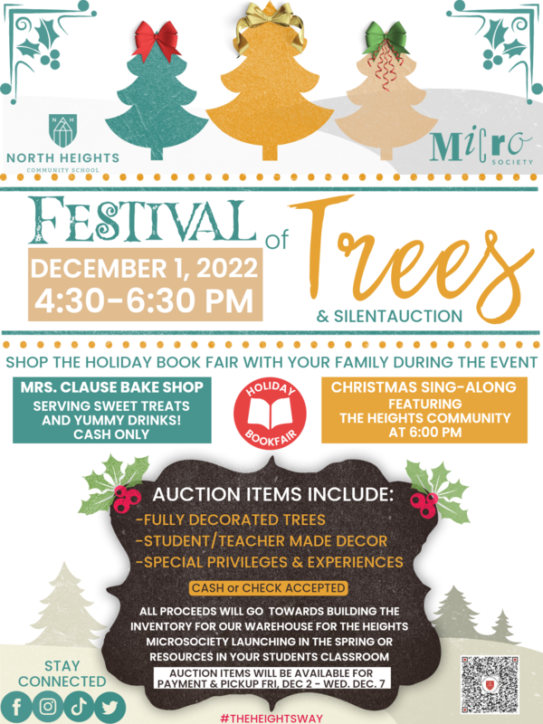 Shop the Holiday Book Fair, visit Mrs. Clauses Bake Shop for a sweet treat, join in on the Christmas Sing-Along and bid on your favorite tree or decor that will help raise funds for your student's school.