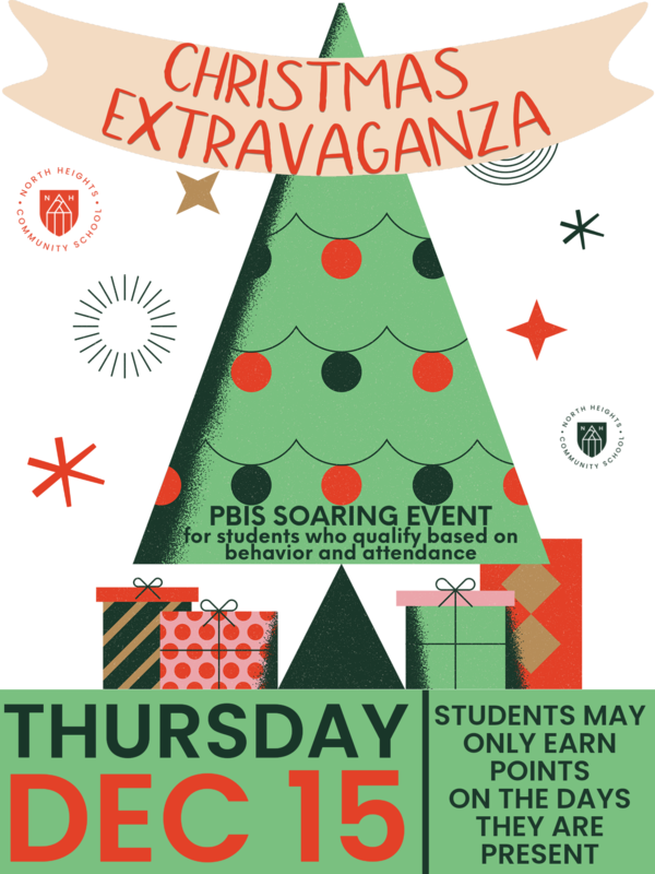Thursday, December 15, we will celebrate SOARing behavior and attendance with the Christmas Extravaganza PBIS event! There is lots of fun planned for that day!